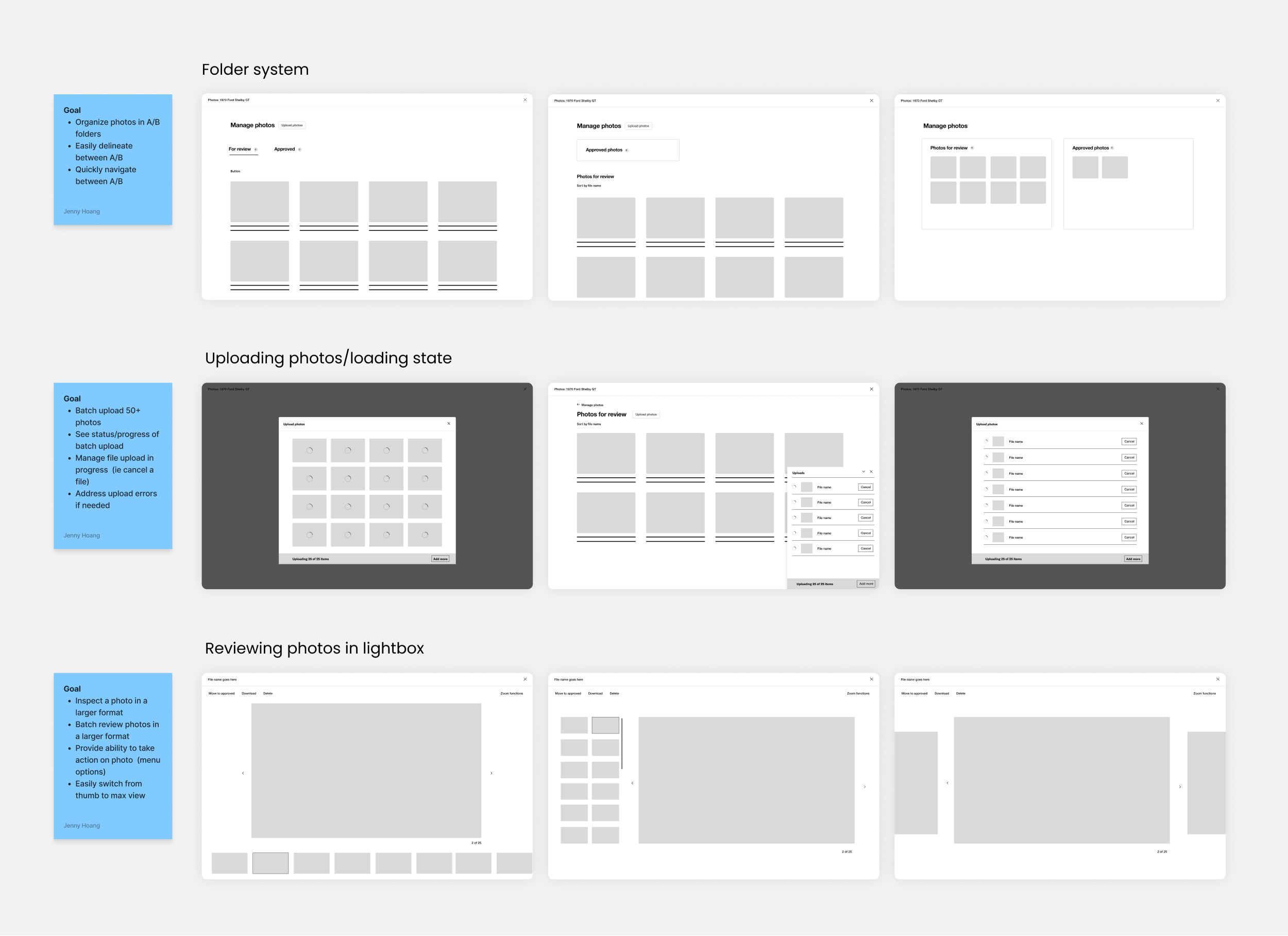 Along with the product manager, I consulted the operations team to understand their workflow and pain points. We documented their needs against the current process across each phase of photo management, which became the foundation for defining the tool’s requirements.